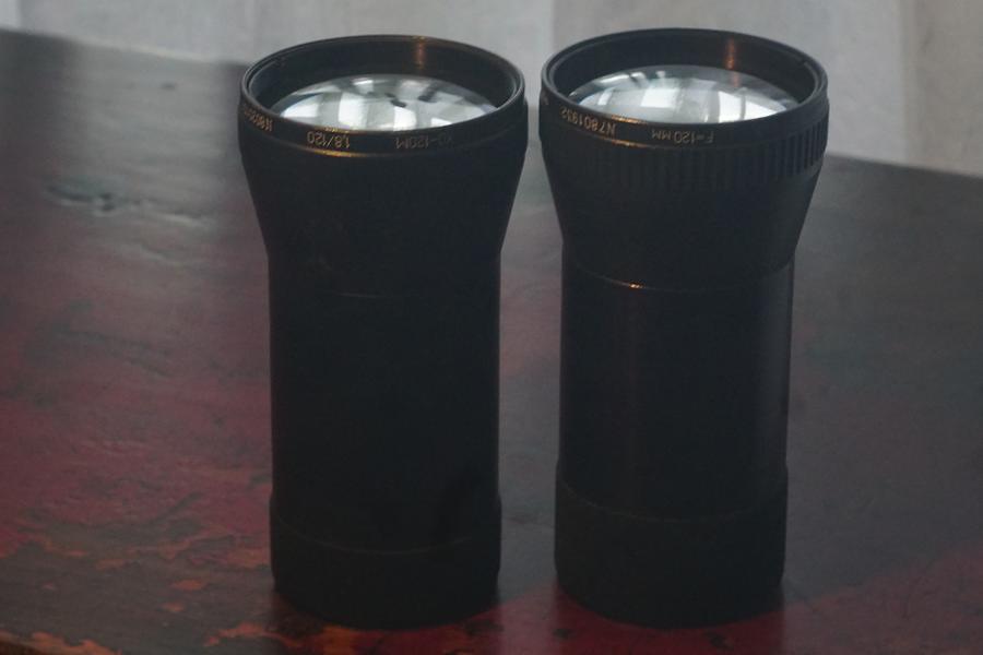 Es handelt sich dabei um russische Kino-Projektionsobjektive für 35mm-Film. Beide haben einen Tubus mit 62,5 mm Außendurchmesser für Steck- oder Klemmfassungen und können dementsprechend am einfachsten mit Henrys genialem Samt-Fokussiertubus in der größeren Variante an Kameras adaptiert werden. Ich habe beide auf diese Weise vor meine Canon 5D MkII (KB-Formatsensor) gehängt. Um auf unendlich fokussieren zu können, musste ich sie dafür beide kürzen, was relativ problemlos geht. Bei dem 120er muss man allerdings bis kurz vor die Rücklinse abschleifen, bei dem 140er muss man nur um einige Millimeter kürzen.