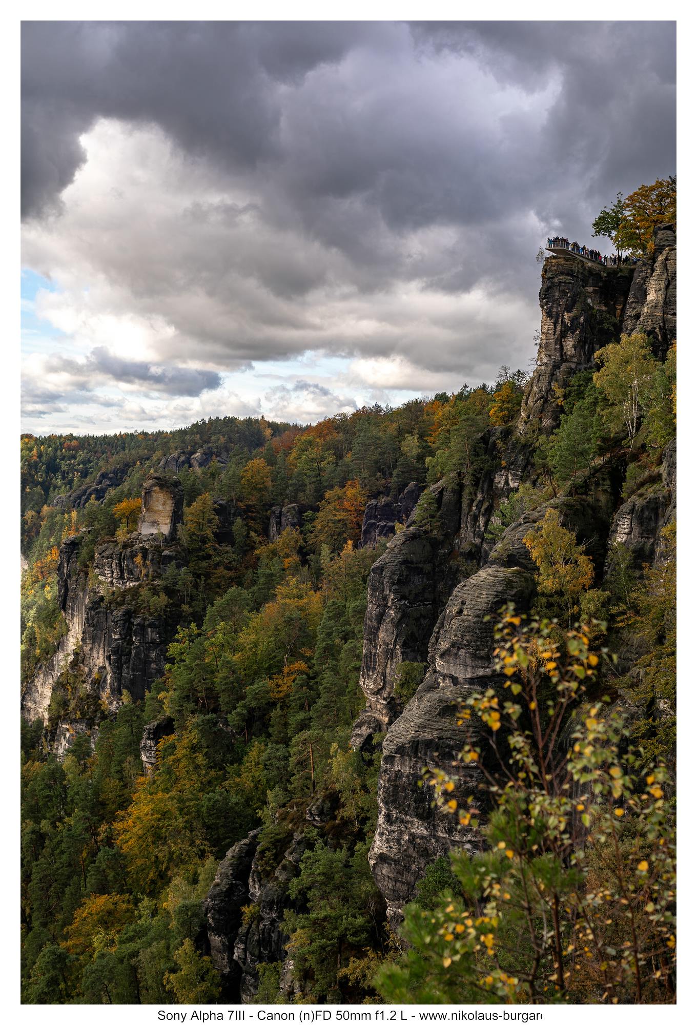 So hat es mit uns z.B. auch die Bastei gesehen im letzten Herbst - und auf f5.6 oder f8 abgeblendet ist das Objektiv einfach perfekt scharf über das ganze Bild.