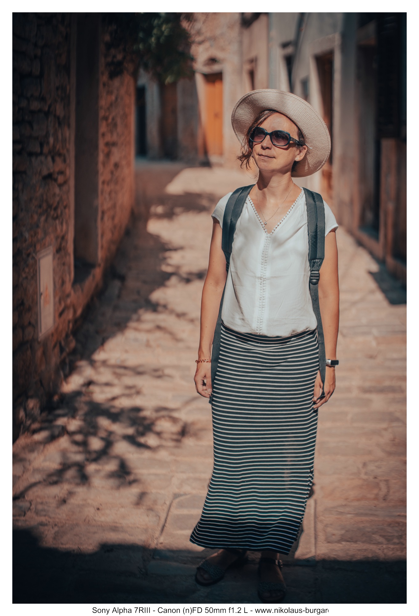 Die Kombination aus Objektiv, Adapter und Kamera ist im Vergleich mit anderen f1.2-Normalobjektiven sensationell klein, das Canon (n)FD 50mm f1.2 L ist in der Größe eher mit einem der üblichen f1.4-Objektive der anderen Hersteller vergleichbar.