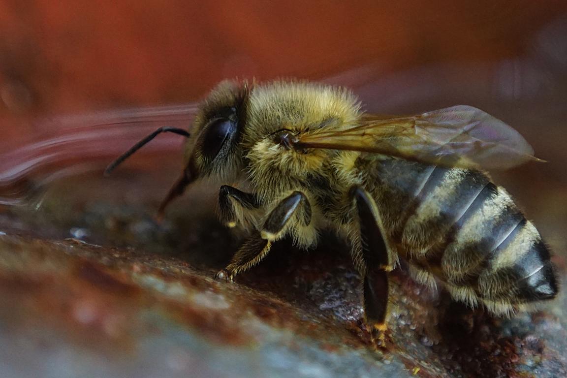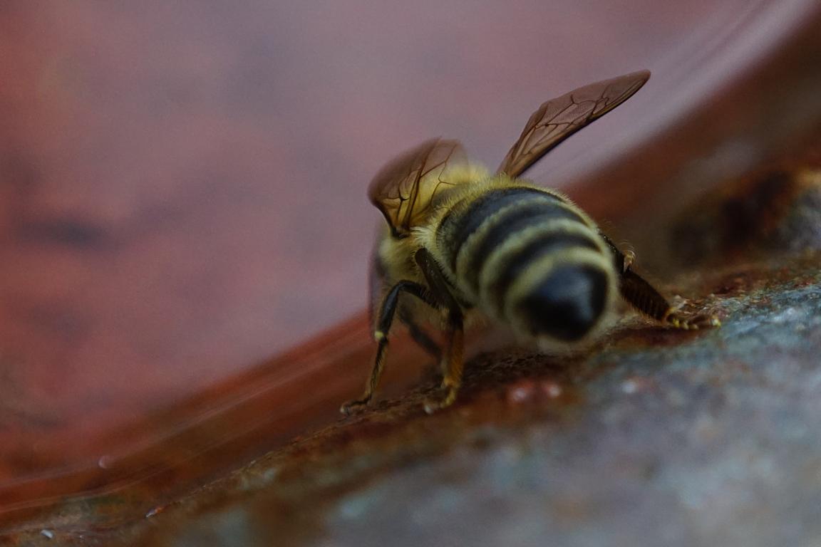 Umschwärmt von 2 vermutlich durstigen Hornissen war ich schon leicht beunruhigt, weil ich ja auf 5cm an der Biene dran war und nicht wußte,