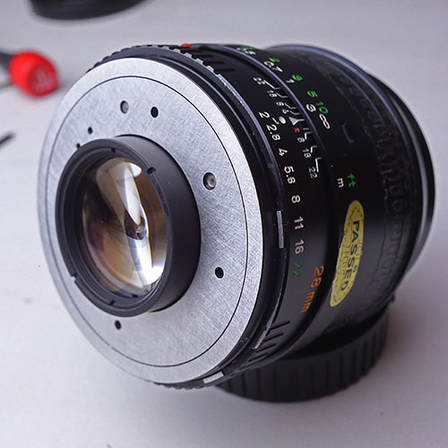 Umbauversuch Minolta MD W.Rokkor 28mm f2 auf EF