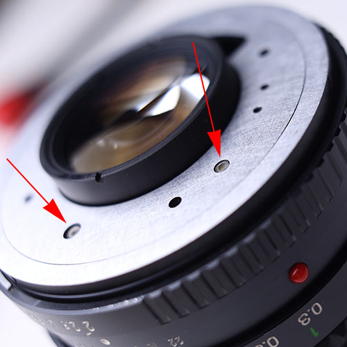 Beim Übertragen der notwendigen Bohrpositionen sich die Lageverhältnisse - insbesondere die spätere 12 Uhr Stellung der Skalen - klarmachen und aus PB Adapter und Objektivrückteil ein "Sandwich" bilden.