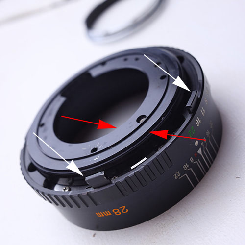 Ich habe es mit dieser Methode damals geschafft, die gesamte Blendenmechanik unangetastet gelassen zu haben. Mit irgendwelchen Klammer oder ähnlichem hab ich nicht gearbeitet.