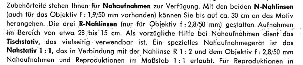 Das habe ich in einer Retina Reflex III Bedienungsanleitung gefunden: