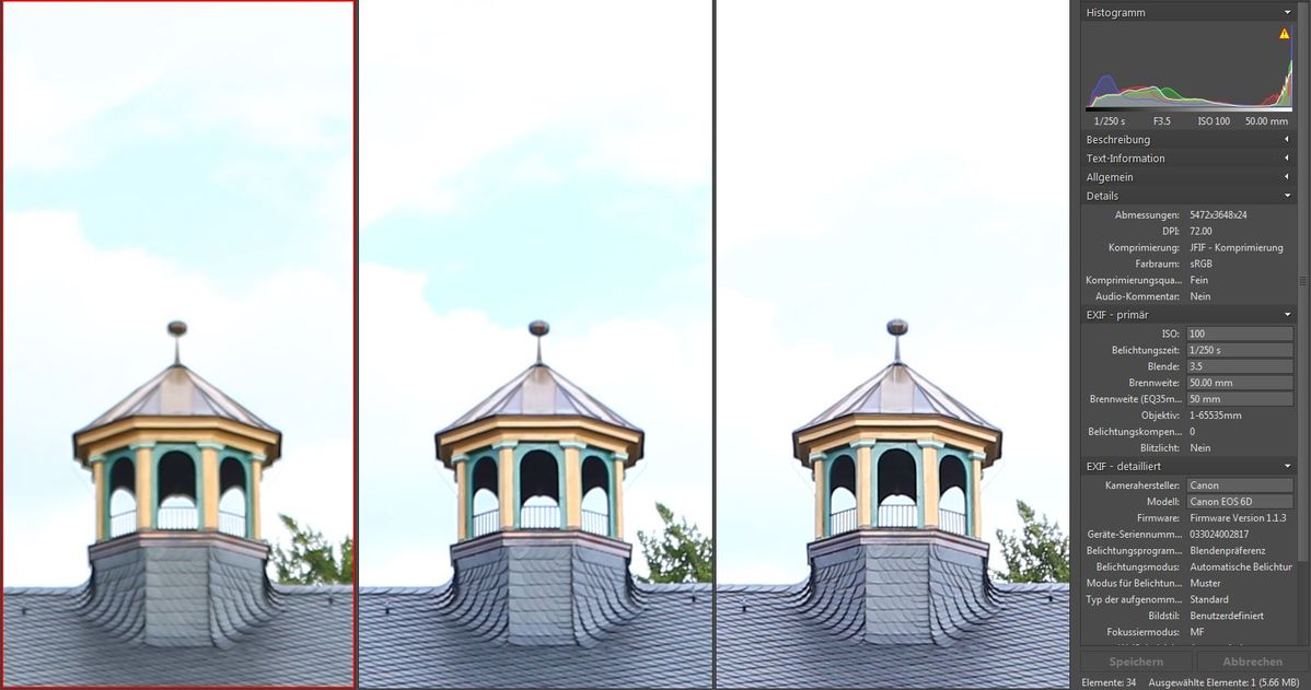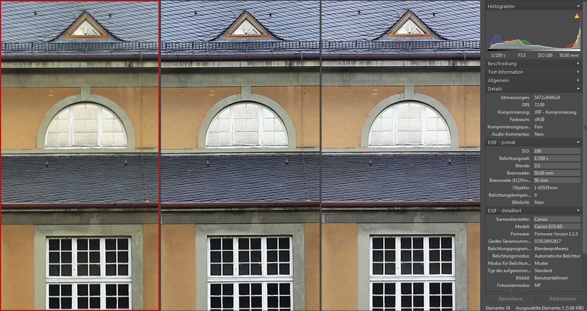 Hier ein Motiv wo es durch die Regelmäßigkeit etwas einfacher ist , Zentrum 100 % , F3.5, F5.6 F8.0 :