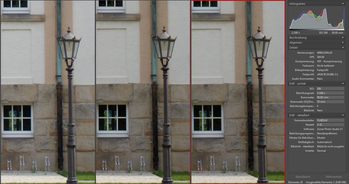 Im Vergleich dazu einmal das Travenar zum Fuji Kit-Zoom bei 35mm/5.6 :