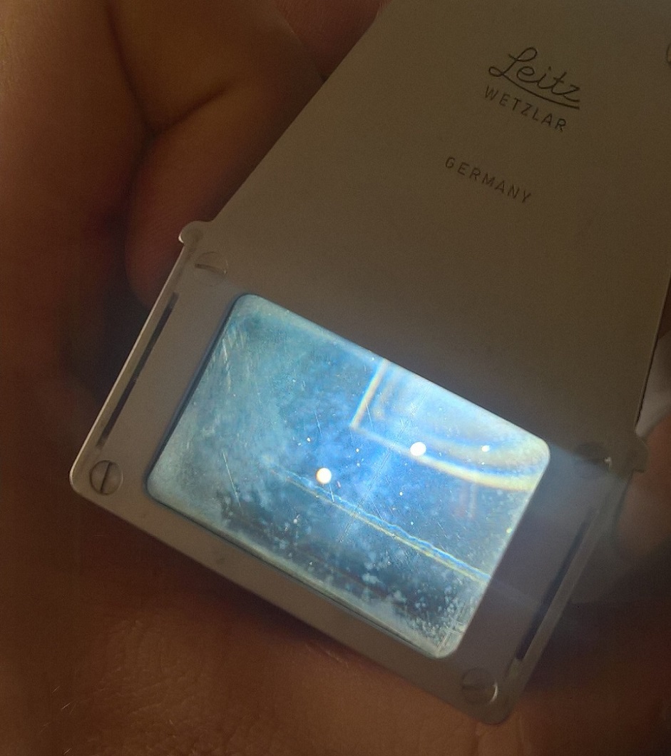 Es handelt sich zum einen um ein Visoflex III, der eigentliche Aufbau ist in super Zustand, die Lupe allerdings ist in nicht so gutem Zustand. Optisch hat es nicht wirklich einen Einfluss, allerdings weiß ich nicht ob es Pilz oder etwas anderes ist.