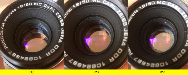 Dementsprechend schliesst sie die OB auch noch mindestens eine Blende zu spät(?)..das Pancolar hat ja zwischen 1,8 bis 2,8 vier Blendenklicks, und erst bei 2,2 beginnt sie sich zu schliessen.