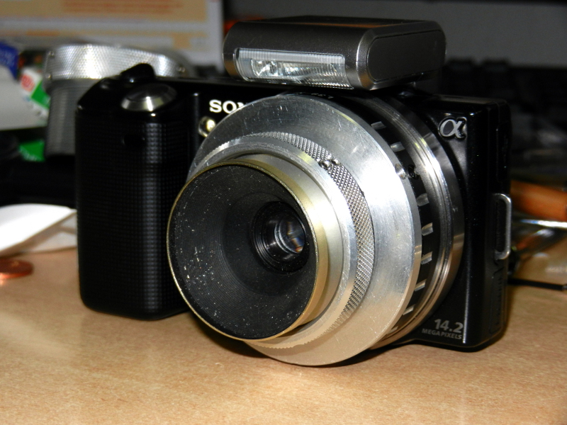 es wäre aber auch für meine Finger nahezu unmöglich gewesen etwas zu verstellen. Das ganze habe ich dann mit einem M42 Kurzhelicoid verschraubt, der einen Nex Adapter hat.