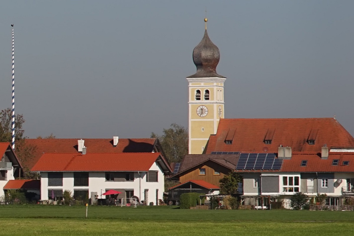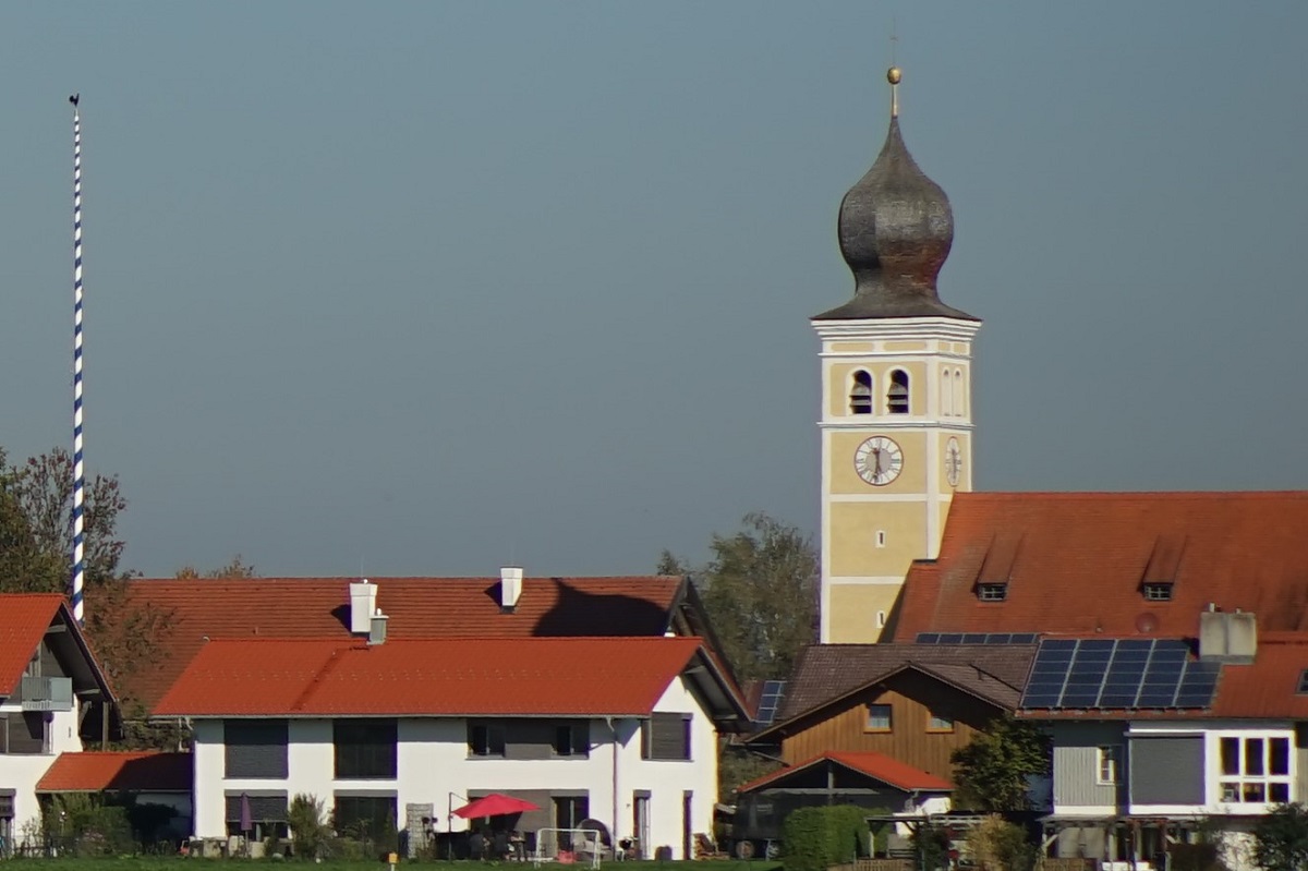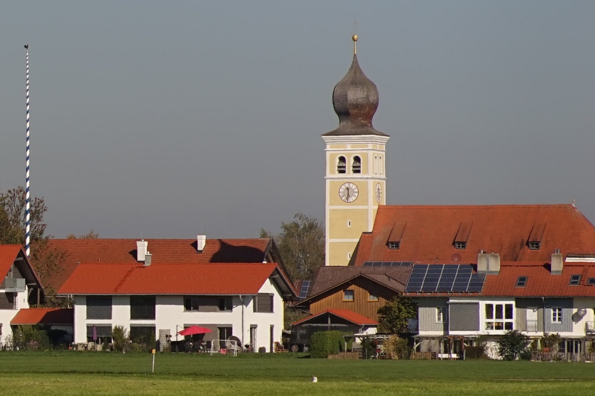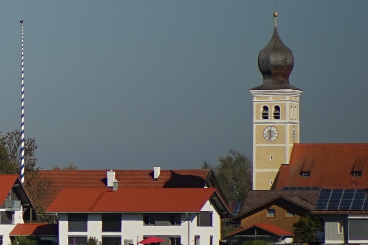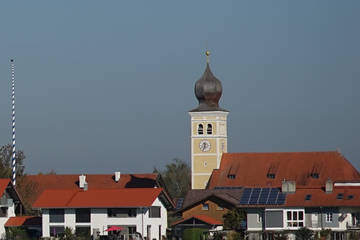Hier eine Totale, manuell fokussiert auf den Kamin mit Wetterhahn. Die Vignettierung lässt ahnen, was die Stunde geschlagen hat. Worst Case volle Öffnung f2: