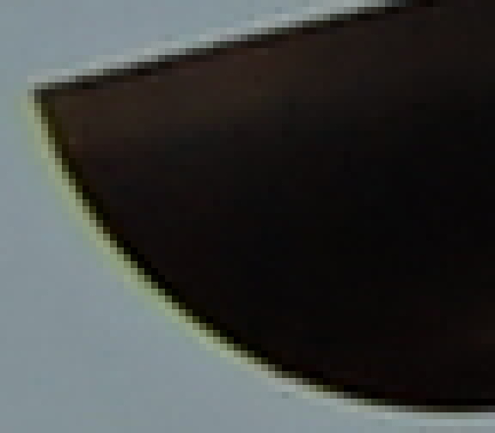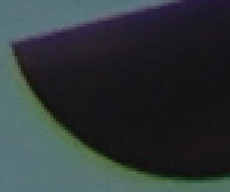 Zum Abschätzen der Größenordnung eine andere Stelle in 1000%. Violette und grüne Säume. Sie stören auf einer Breite von mehreren Pixelreihen: