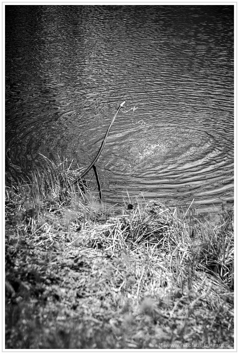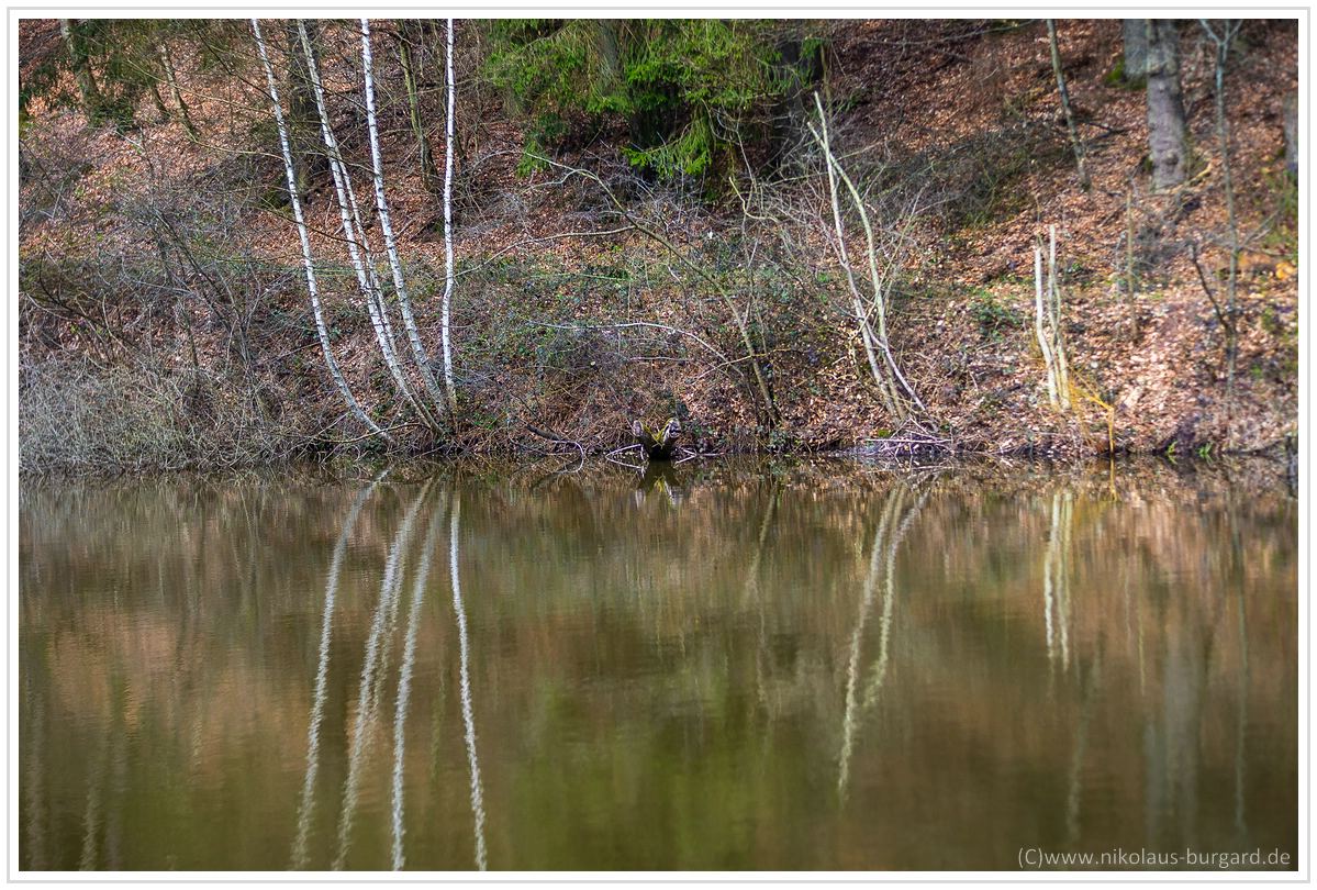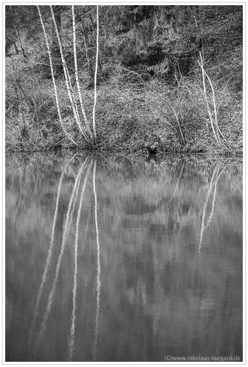 Fokus lag auf den Schilfgräsern am anderen Seeufer links unterhalb der Bäume. Es gibt gegen unendlich nicht nur eine Ausdehnung des Schärfebereichs, sondern auch eine leichte, absolute Schärfesteigerung.