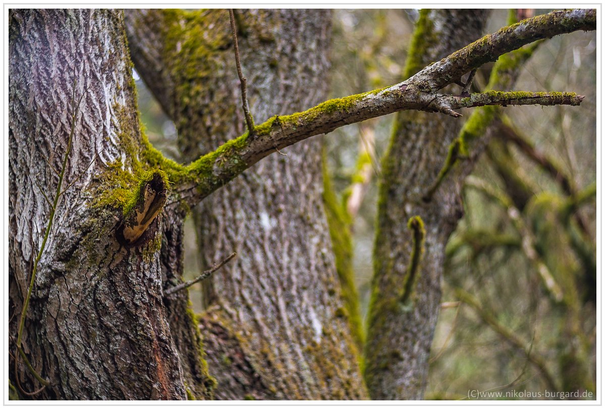 Fokus ist auf dem oberen Ast im Vordergrund. Man sieht schön, wie der scharfe Bereich sich immer weiter ausdehnt, beim dritten Bild ist sogar der unterste Ast scharf.