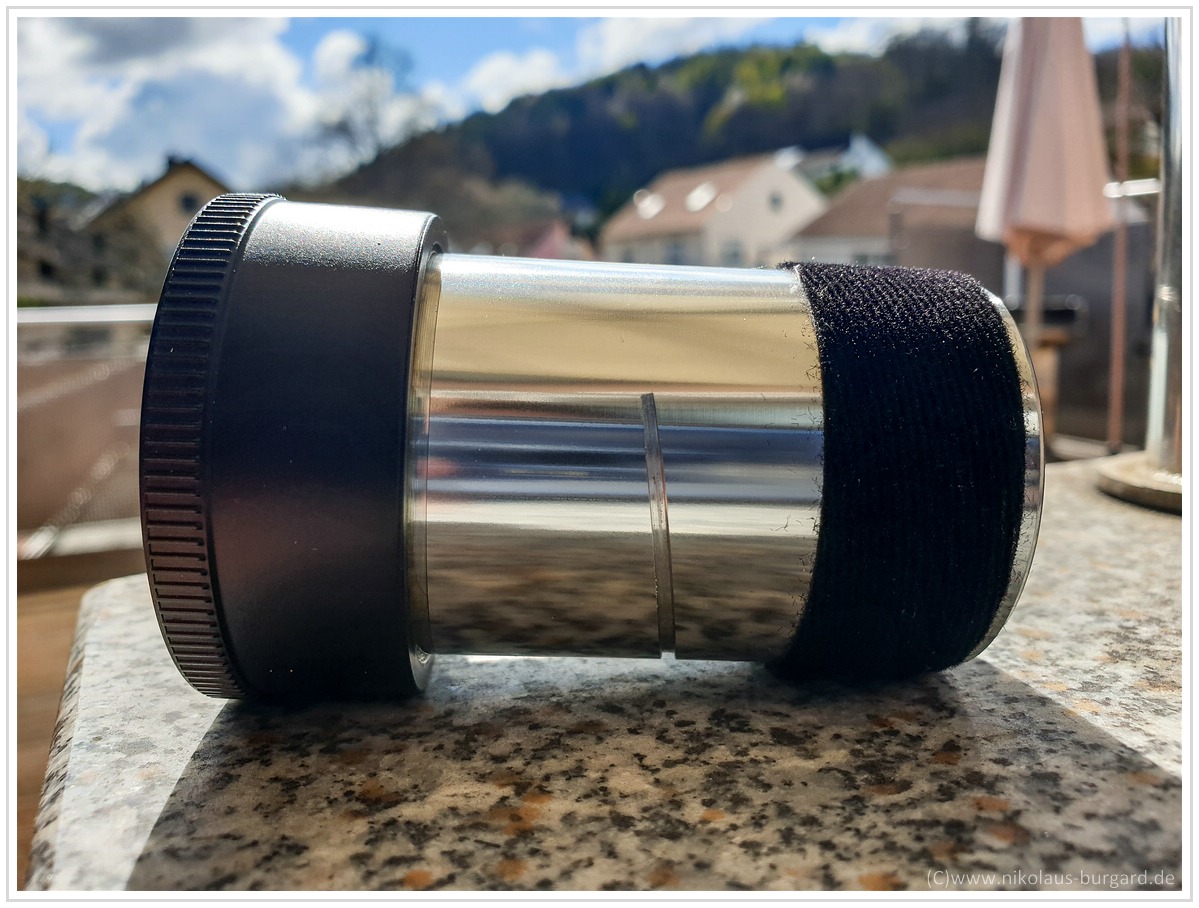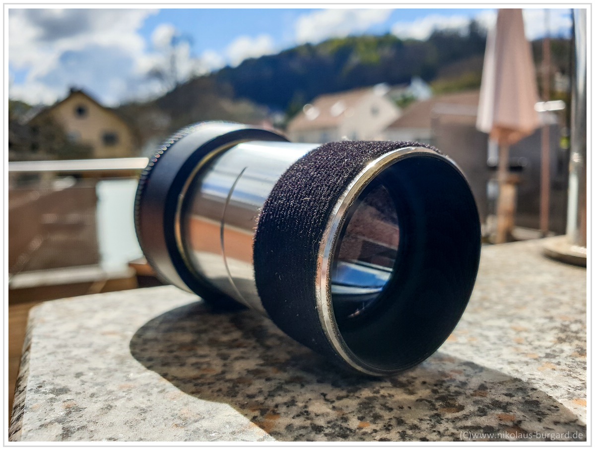 Ich werde noch schwärzen und mir eine noch kleinere, Blende 8 entsprechende Blende basteln und dann nachberichten.