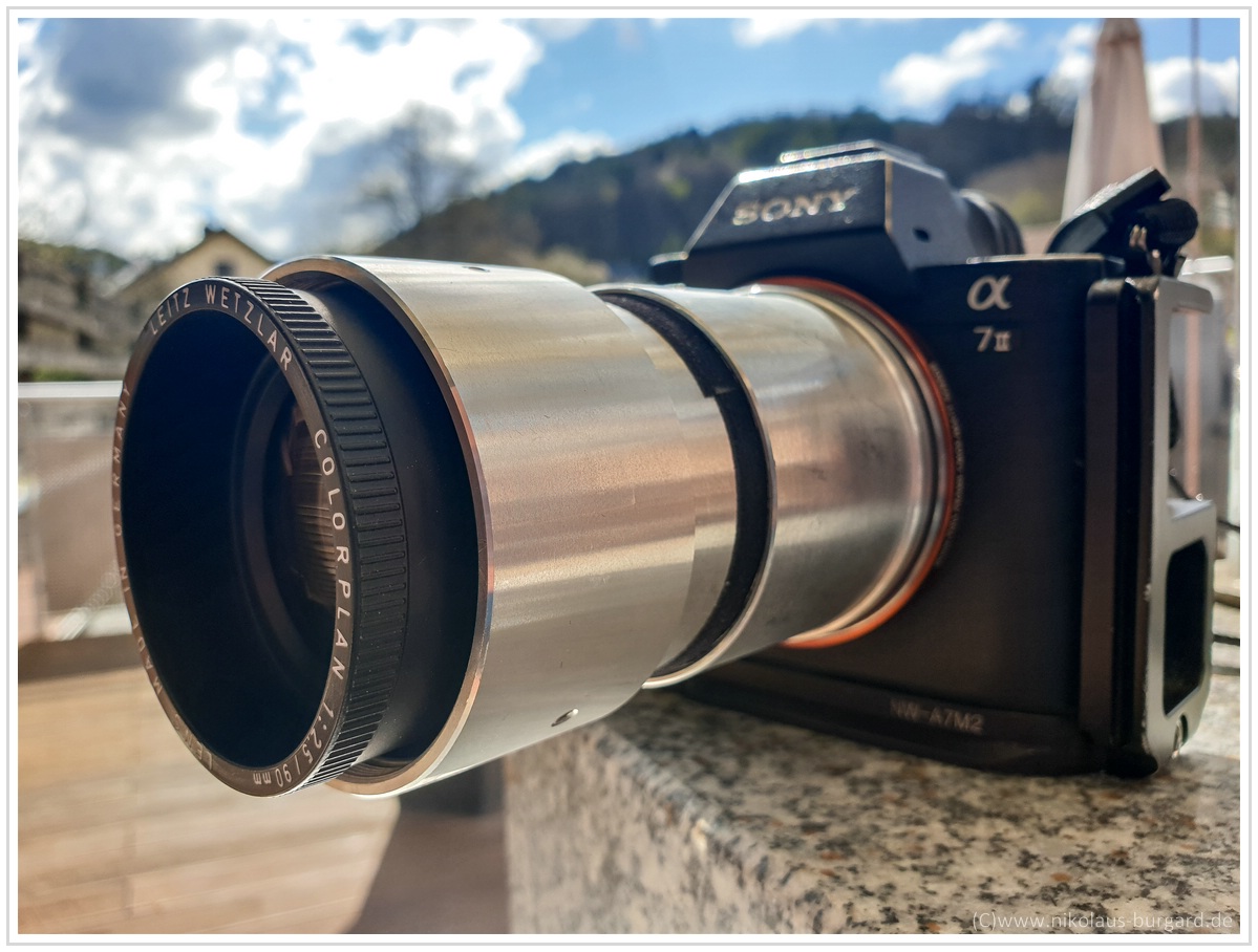 Und hier mit der Adaption über die beiden SFTs an der Sony A7II:
