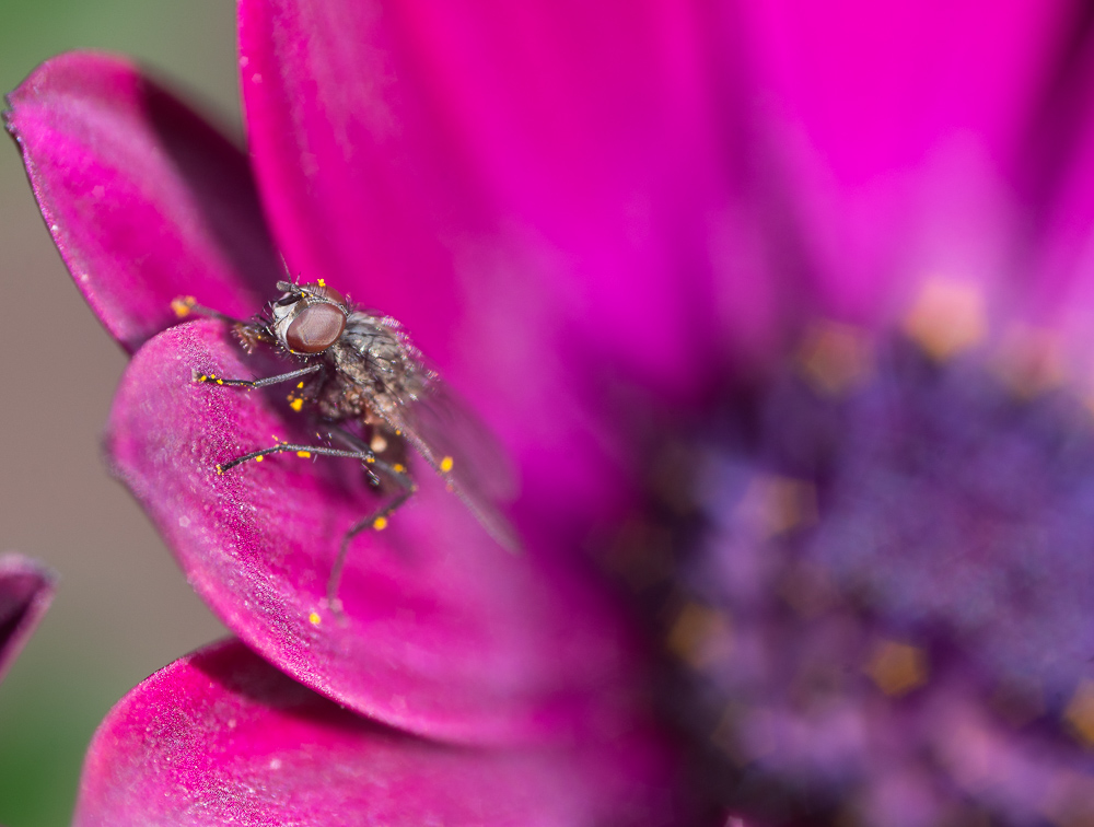 Das Objektiv lässt sich nur durch Verschiebung der Schärfeebene fokussieren, also war ein Makroschlitten Pflicht. Zusätzlich habe ich dann noch meinen Nissin mit Pringles Diffusor eingesetzt. Abgeblendet auf 5.6 und mich haben die ersten Ergebnisse einfach umgehauen.