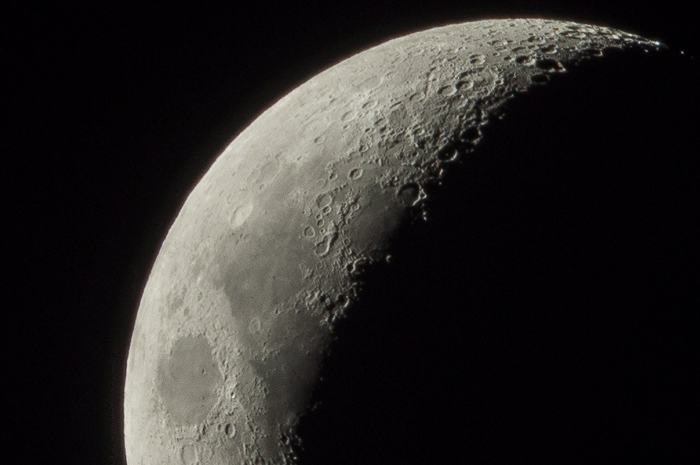 Hier ist ein 1:1 Ausschnitt eines Bildes von dem Bereich, wo ich mit Focus Peaking die Schärfe 'hingezimmert' habe. Eine Dachschräge habe ich genommen, um zu erkennen, ob ich mich doch um ein Weniges verhauen haben sollte. Dann wäre es halt kurz davor oder dahinter scharf ... wenn es denn irgendwie scharf wäre. Ich fürchte fast, es handelt sich hier um ein klassiches "Geld versenkt". Wenn ich mit dem Programm "Focus Magic" das Bild untersuchen lasse, dann schlägt er mir einen Korrekturwert von 8 vor, um die Unschärfe abzumildern (als Vergleich: leicht defokussierte Aufnahmen brauchen Werte von ca. 4 für die Korrektur).