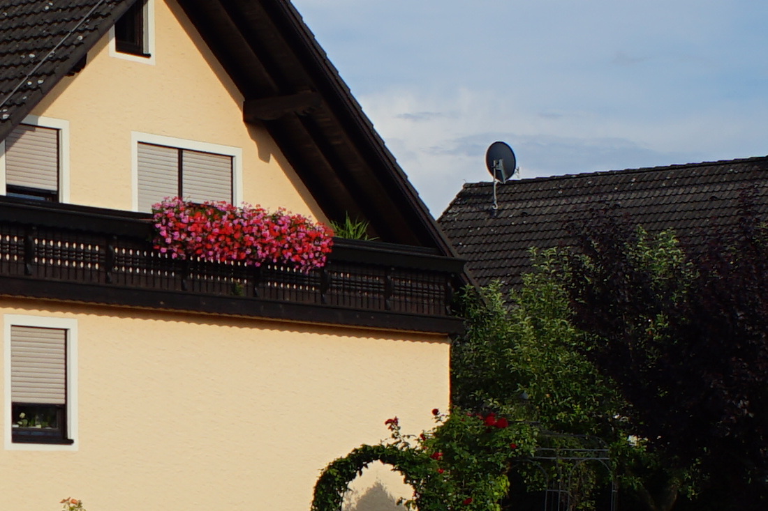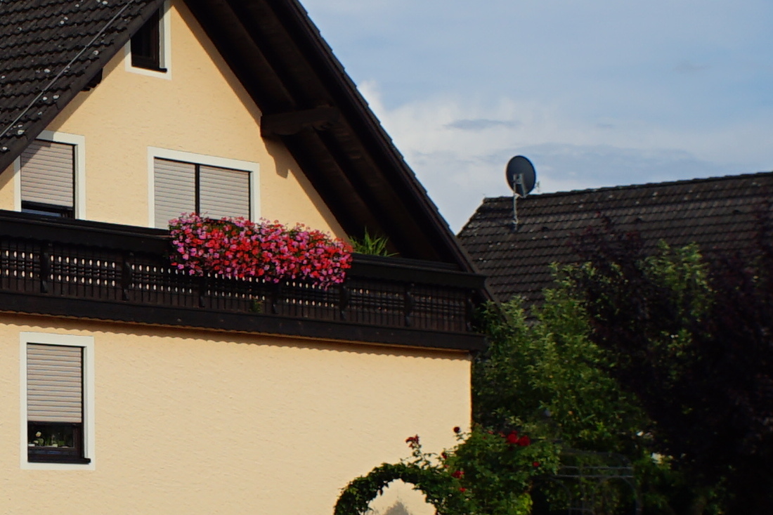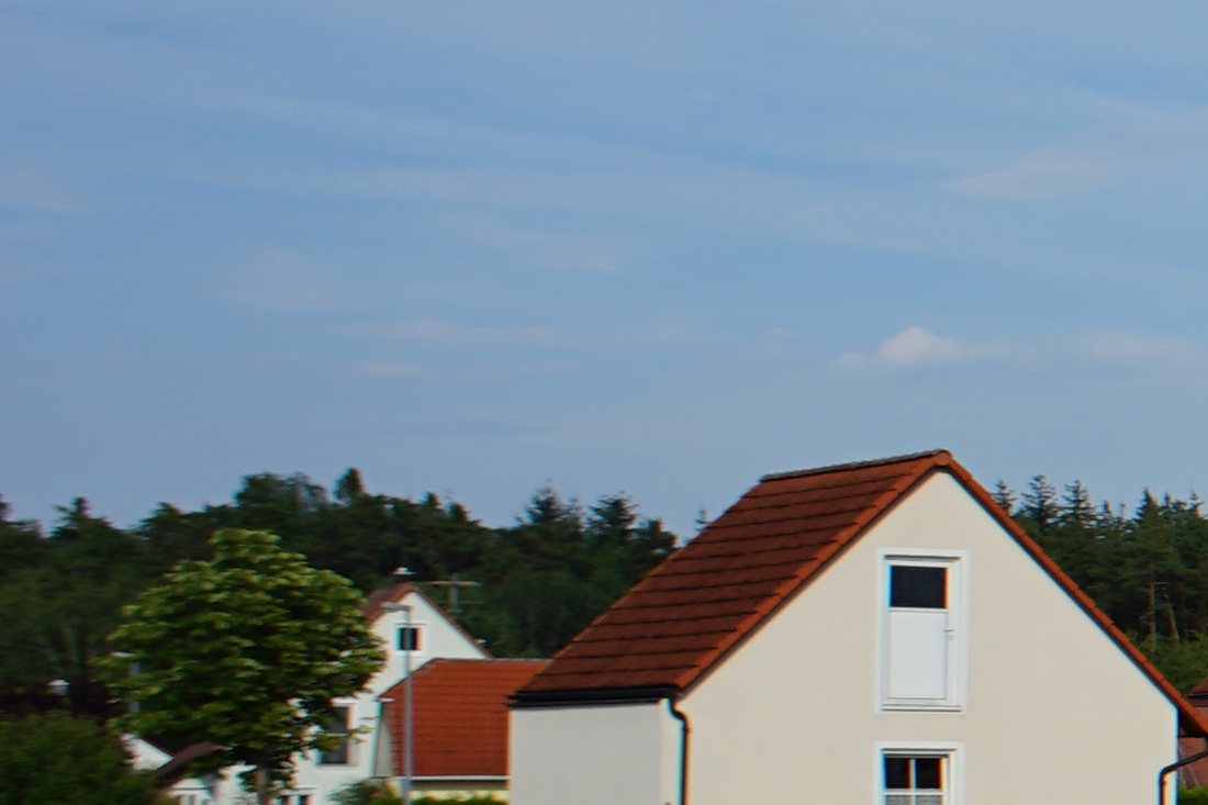 Scharfgestellt auf das Gebäude, von dem die Details als 1:1-Crop ausgeschnitten und in die verkleinerte Gesamtansicht in Photoshop CS4 montiert wurden.