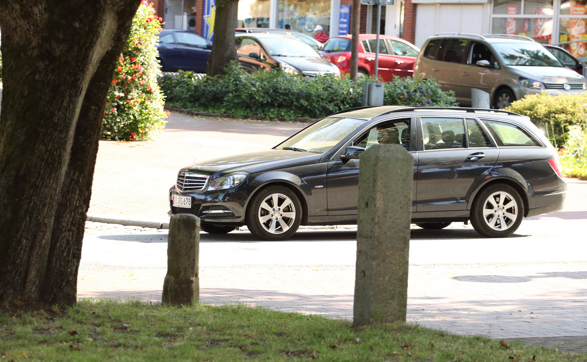 Im nächsten Bild fuhr plötzlich jemand mit dem Fahrrad ins Bild. Der Fokus klebt aber weiterhin an dem Auto.