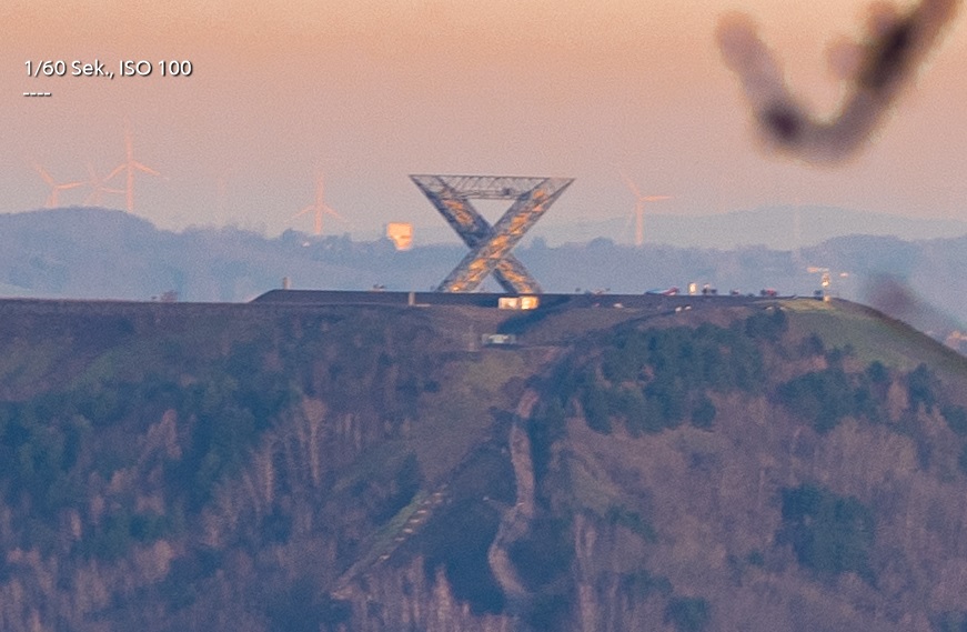 Hieraus der 100%-Crop -Entfernung sind 10km Luftlinie, da ist auch einiges an Dunst dazwischen!