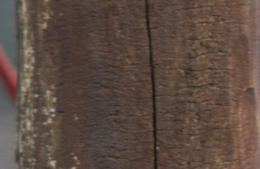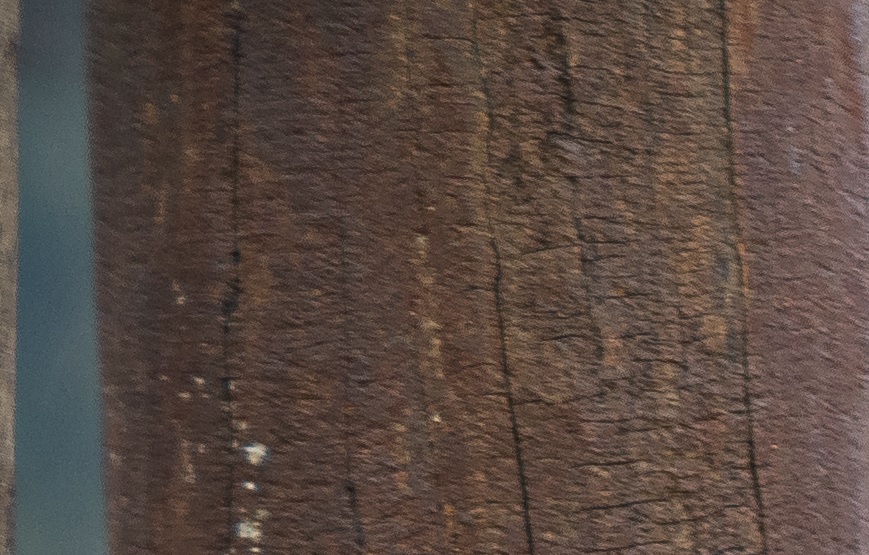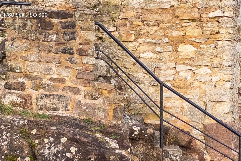 Die Verzeichnung ist für ein älteres Zoomobjektiv gering und ebenfalls gut korrigierbar, weil immer nur in "eine Richtung".