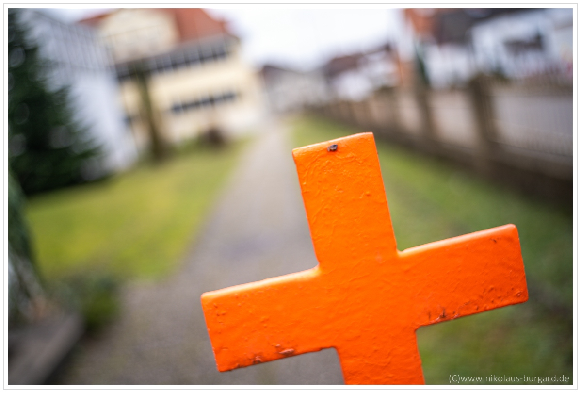 #8 f2.8 Fokus auf dem Kreuz im Hintergrund - Das Vordergrund-Bokeh gefällt mir!