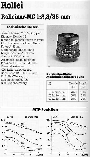 Diese Testberichte zur Mamiya Variante und zum Rolleinar zeigen einen Unterschied der Linsen auf (das Mamiya ist bei der MFT besser) und das Rolleinar wird als 7 Linsen in 6 Gruppen angegeben. Vorne wird es als 7 Linsen in 5 Gruppen bezeichnet. Da hat sich offenbar irgendwo ein Fehler eingeschlichen. Weiss jemand mehr?