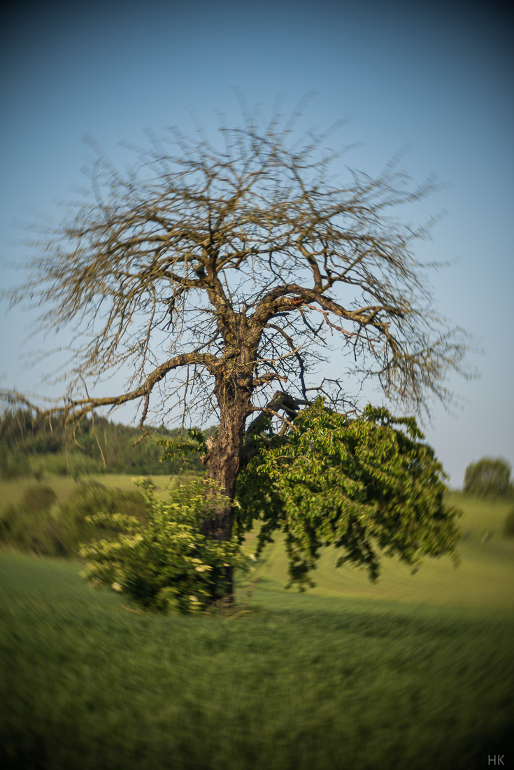 So, hier kommen noch ein paar "Testbilder" zu den Eigenarten dieses Objektivs. Zuerst einmal ein Bild, das die extreme Krümmung der Schärfeebene zeigt: