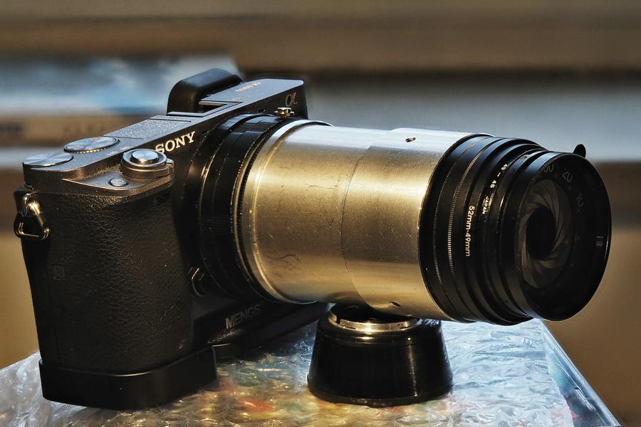 Somit war für mich klar, das Teil muß mit Adapter an die Kamera, dann kommt Henrys SFT mit dem Projektorobjektiv, die Ergebnisse waren ernüchternd, man konnte zwar etwas abblenden,