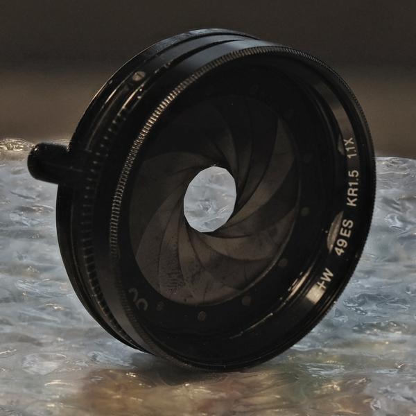 wenn man dieses Außen-Gewinde mit einen Saitenschneider etwas bearbeitet, dann kann man den Filter einklemmen und hat ein 49er Innengewinde ohne das Objektiv zu beschädigen. Daran dann die Irisblende und