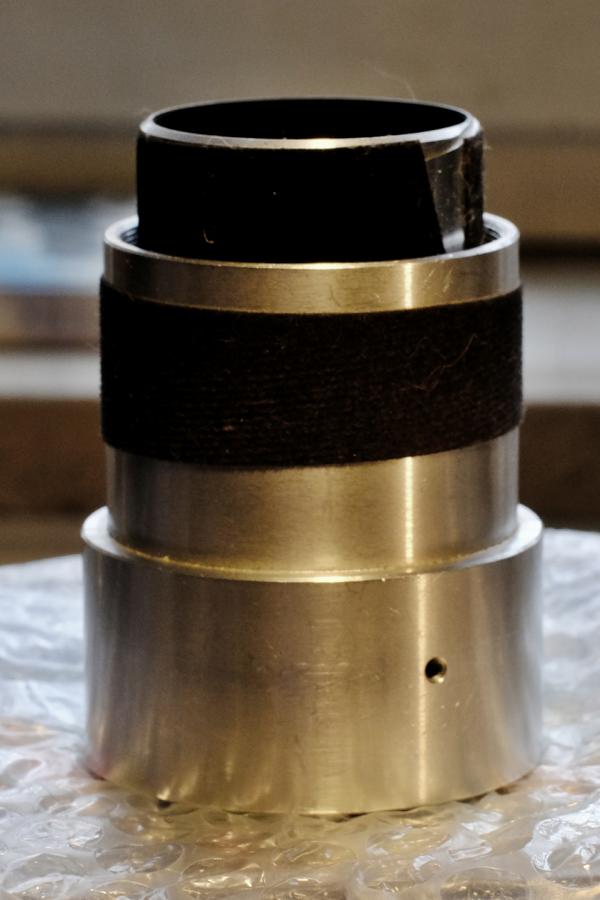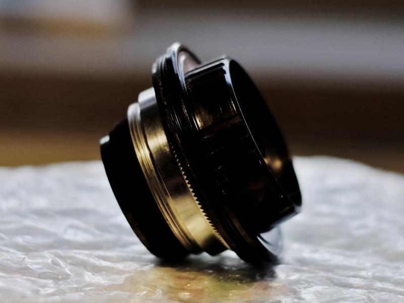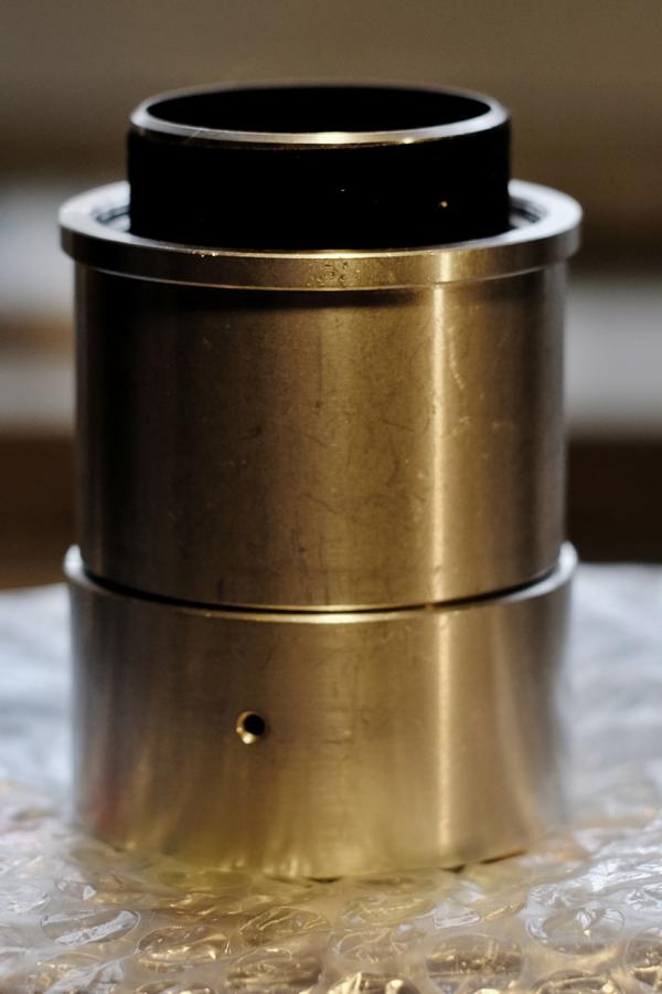 daran hindert, es ähnlich zu machen wie beim Elmaron 2,8/100 wie vor; deswegen habe ich das Objektiv zur Kamera hin überstehen lassen und dort den Abstand mit 52mm Ringen vergrößert, damit das Auflagemaß paßt.