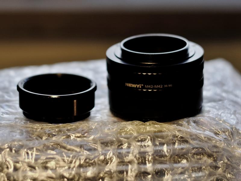 Die 52mm Distanzringe sind übrigen Filterringe ohne Glas, auch die billigen China Zwischenringe für mft haben 52mm Durchmesser mit passendem Gewinde.