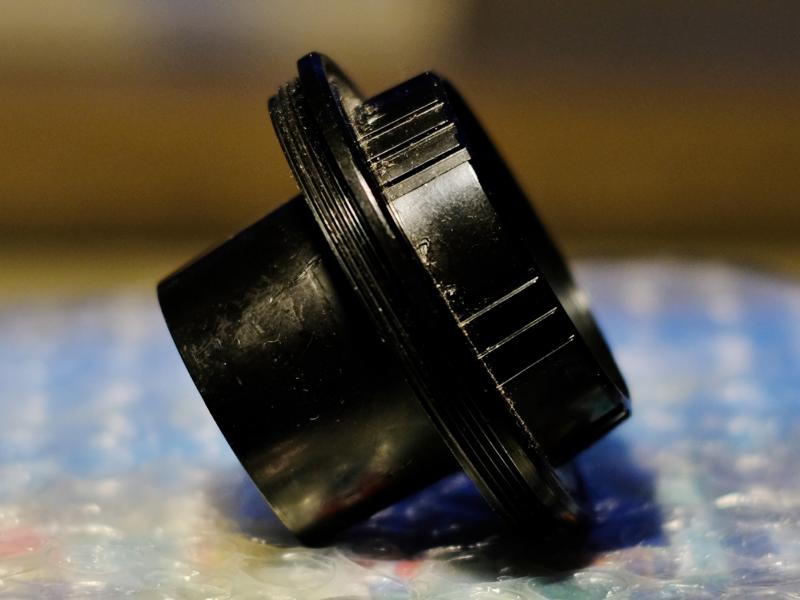 hinten (hier sieht man das angeklebte 49er Gewinde, das in den Reduzierring geschraubt wird)