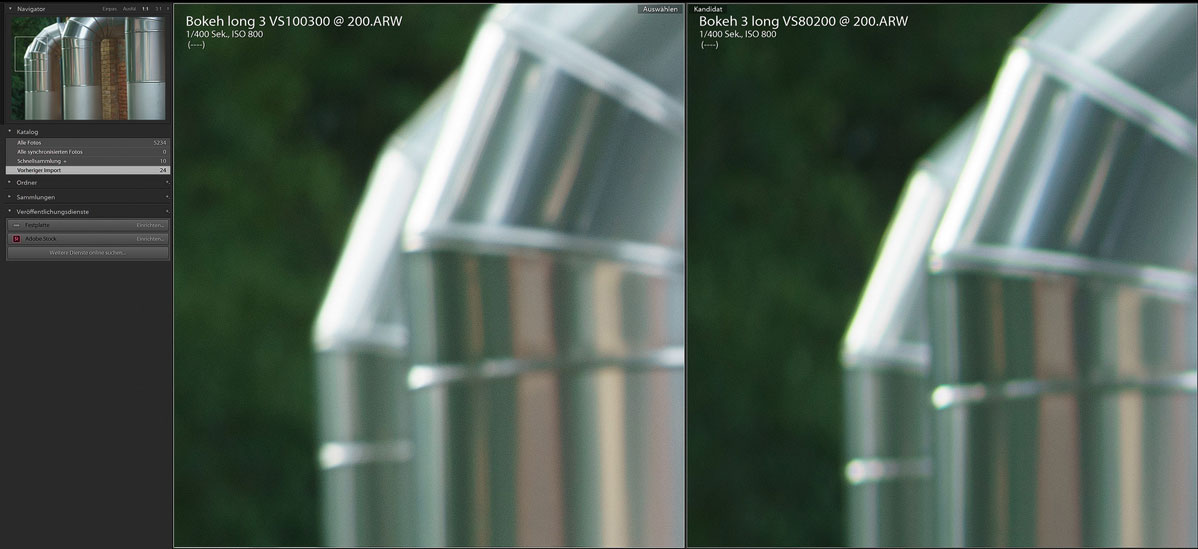 1. Das VS100-300 hat keine Farbsäume im Bokeh, das VS80-200 schon, jedoch fast immer unaufdringlich.