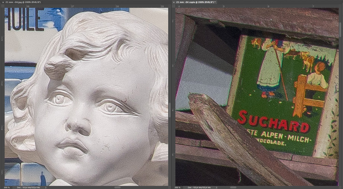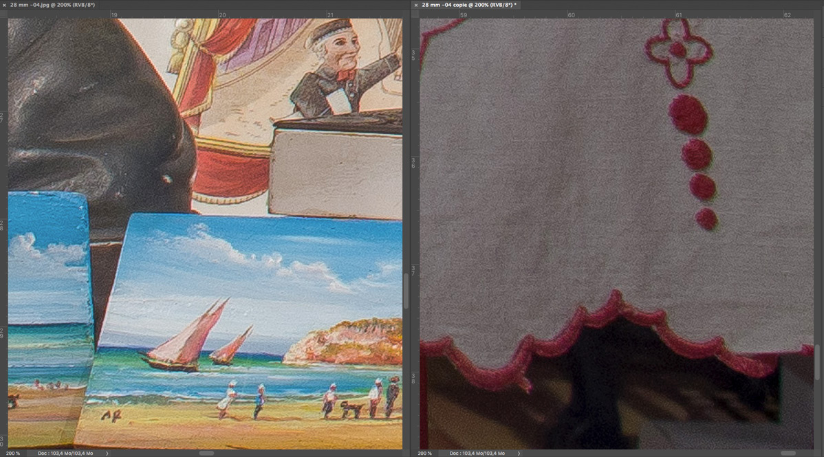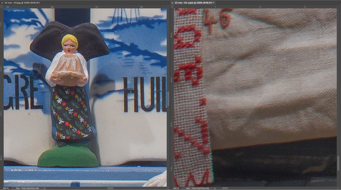 f/13 Mitte (links) und rechter unterer Rand (rechts)