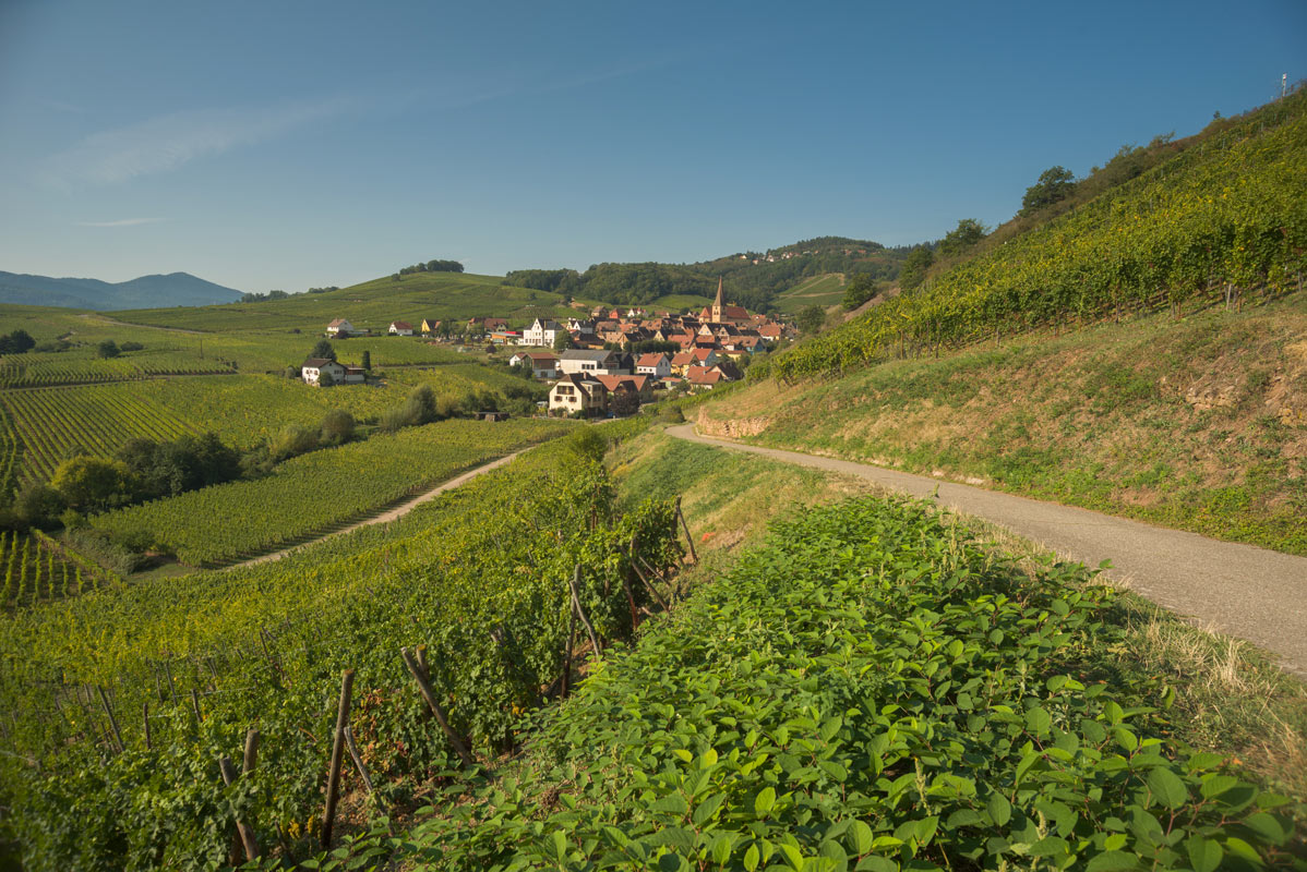 Wie schon in einem der obigen Beitrage angedeutet, leidet das Objektiv wie so manch andere bei allen Brennweiten unter dem Phänomen der Bildfeldwölbung : das Bildfeld ist nicht plan, sondern wölbt sich wie die Innenwände einer Schüssel in Richtung der Bildecken (hier wie ein umgedrehtes "U"). Dadurch werden die relativ der Objektebene weiter entfernten Details in den Bildecken unscharf abgebildet, während nähere Details in die Schärfenebene rücken. Mit dem Sigma 21-35 mm f/3,5-4,2 kann man aber in gewisser Weise kontrollieren, welche Details schärfer abgebildet werden sollen, zumindest wenn man über einen Adapter verfügt, der leicht über Unendlich herausgeht. Bei der folgenden Landschaftsaufnahme habe ich, um scharfe Bildecken im Unendlichen zu bekommen, die Scharfeinstellung ncht in der Bildmitte, sondern auf dem Mittelpunkt einer imaginären Diagonale zwischen Mitte und oberer rechter Bildecke vorgenommen. Seht sebst :