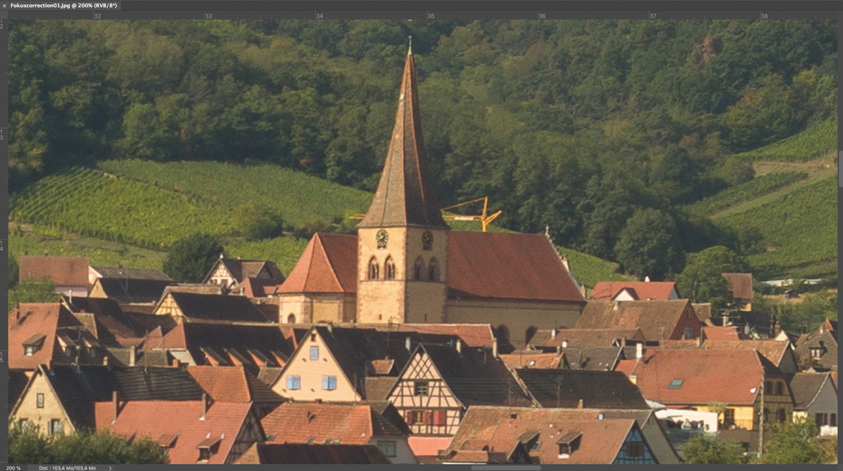 Hier noch der 200% - Crop mit dem Dorf