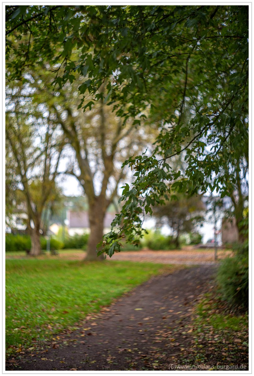#21 f1.9, Fokus auf den kleinen Büschen am Ende des Weges