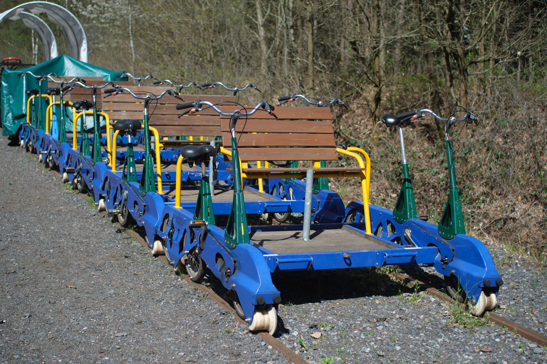Dort Kann man mit Fahrraddraisinen (max. 4 Personen, glaub 14 verfügbar an der Zahl) oder Handhebeldraisinen (max. 14 Personen, 3 Handhebelwagen)