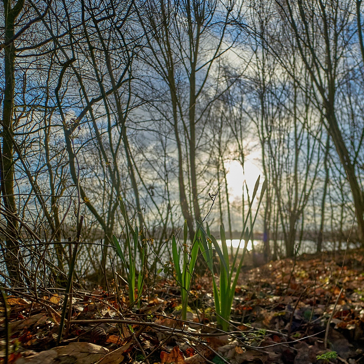 5 Narzissen am Kiesteich - wahrscheinlich mit Gartenabfällen ausgesetzt