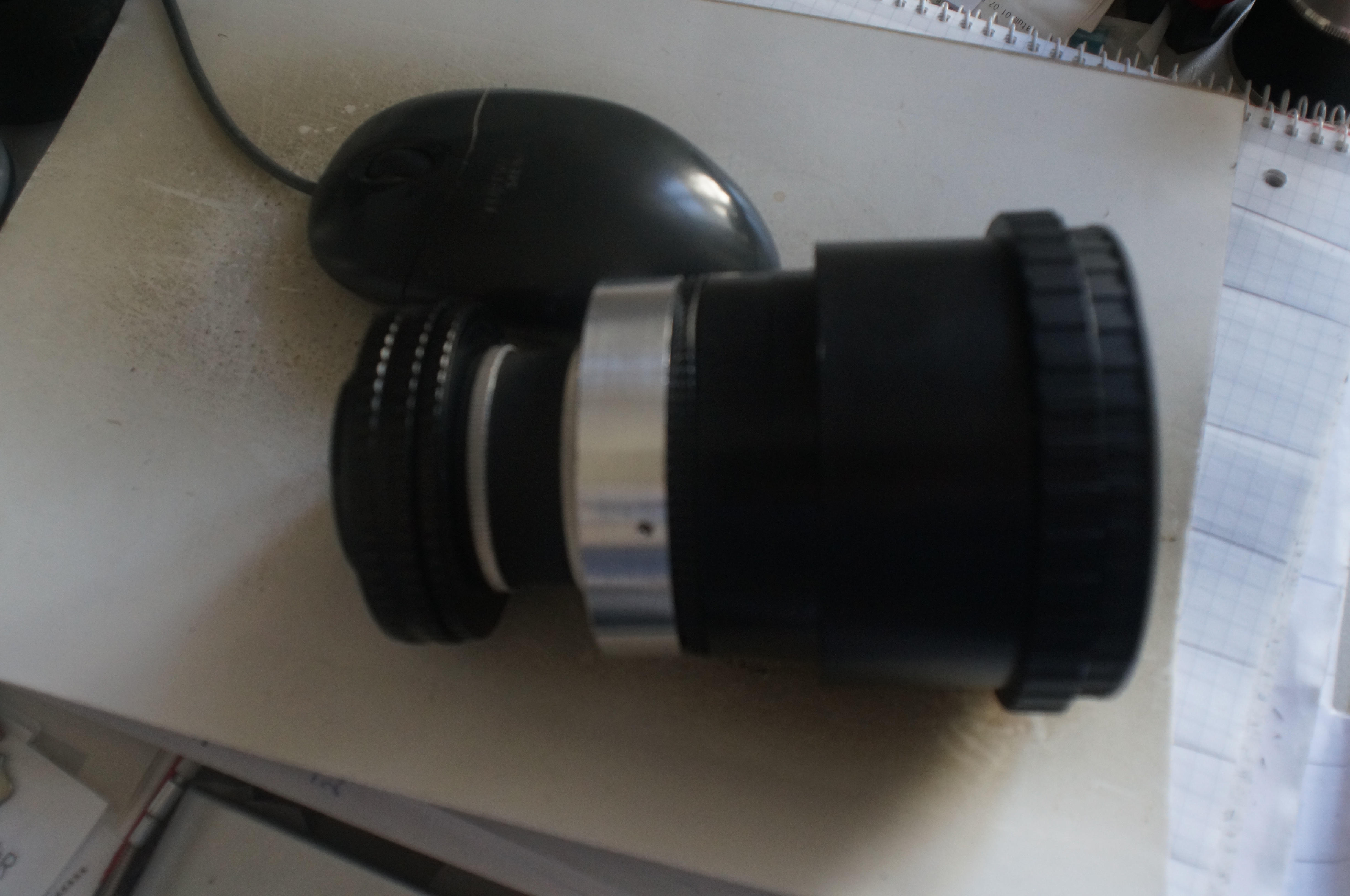 adaptiert hab ich das Objekt mittels eines aufgeklebten Pappstreifen und "reinschrauben" in M42 Helicoid...der Helicoid hängt etwas deshalb die Abschattung in den oberen Bildecken etwas grösser...der ganze Sensor der Sony A7II wird nicht ausgeleuchtet.