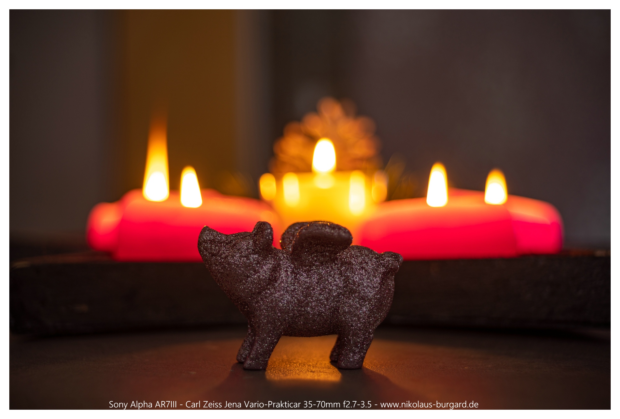 Hierzu habe ich versucht, das Motiv (Glücksschwein) ungefähr gleich groß ins Bild zu bekommen bei den Brennweiten 35, 50 und 70mm.