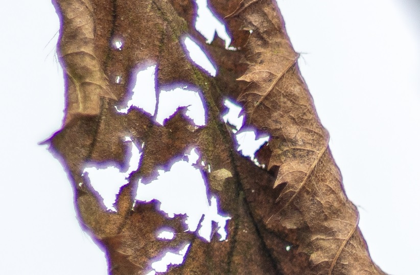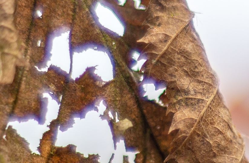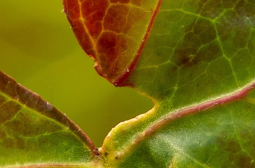 #70-72 Extrem nahe Fokussierung per Helicoid, Abstand jeweils angepasst um das Blatt in ähnlicher Größe abzubilden