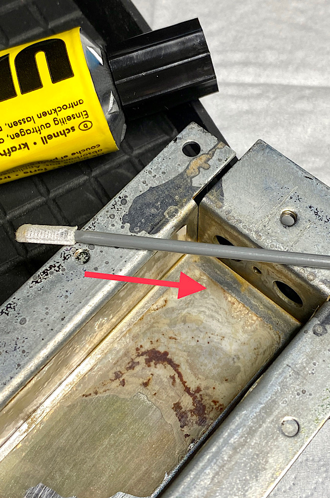 Entlang der Kanten noch Ablagerungen, die ich mit Waschbenzin abgerieben habe: