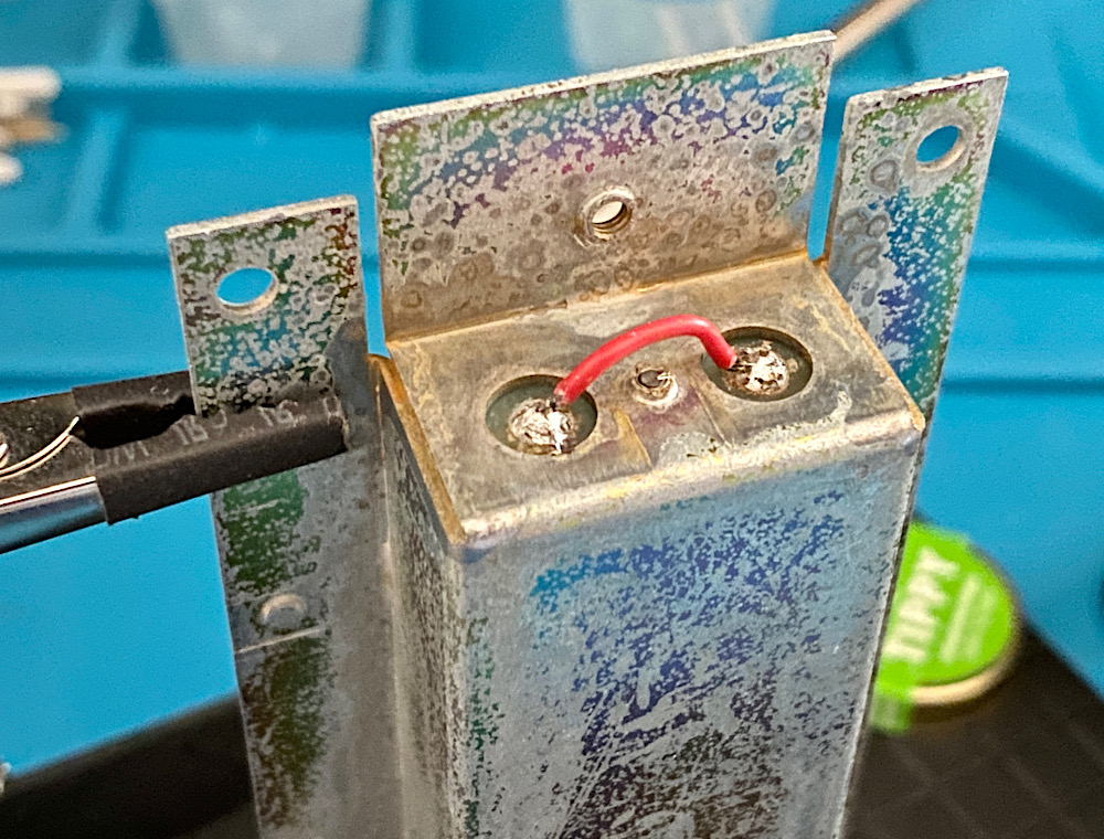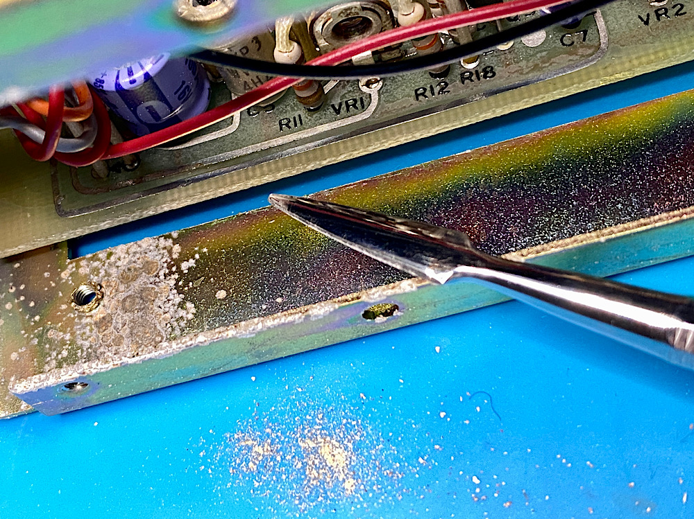 Ich werde die Batteriekammer ablöten und in Durgol-Entkalkerlösung legen. Das sollte die Ablagerungen lösen.