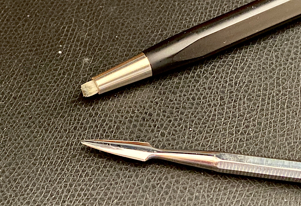 Der Streifen wurde zum Teil abgeschnitten, Platinenwerkzeug und Glasfaserstift haben die Feinarbeit erledigt.