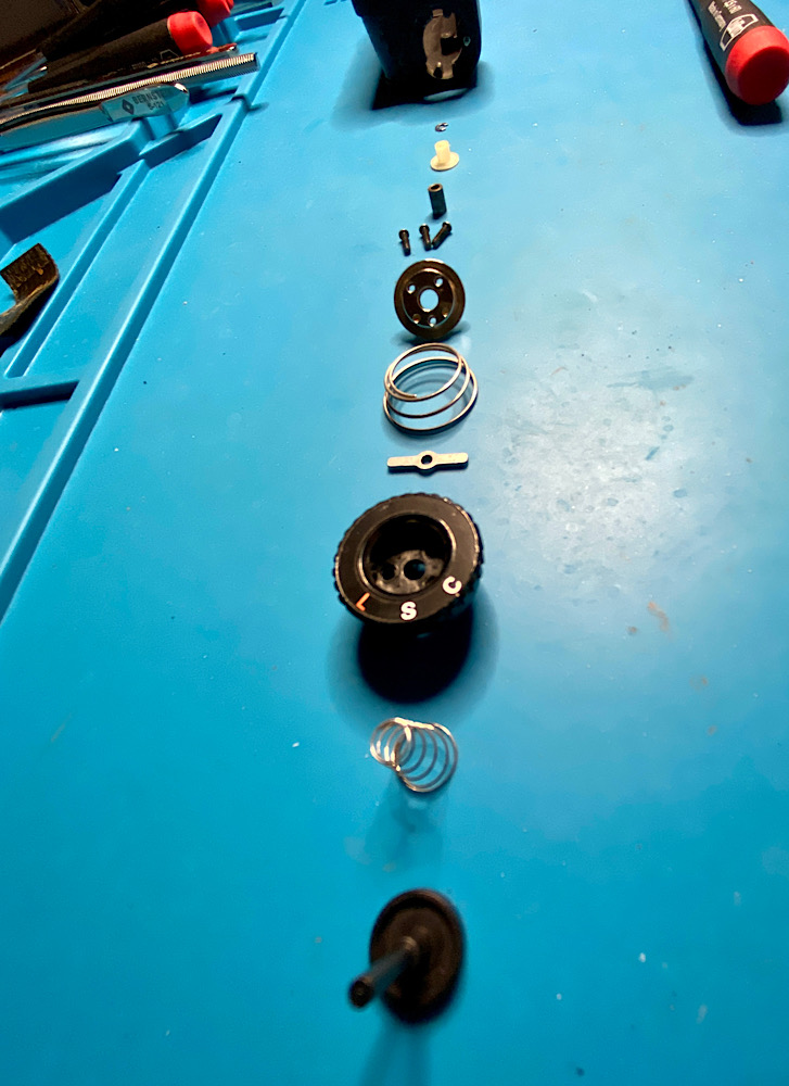 Grund für eine Demontage können Kontaktprobleme, schlechte Gängigkeit bzw. Knirschen beim Anheben/Drücken/Drehen sein, wenn Sand oder sonstige Fremdkörper die Freude am Auslösen trüben, weil es nicht so sanft wie gewohnt geht ;)