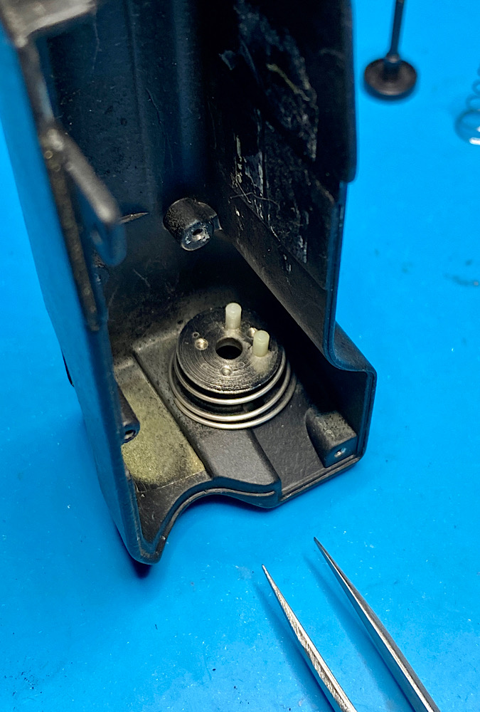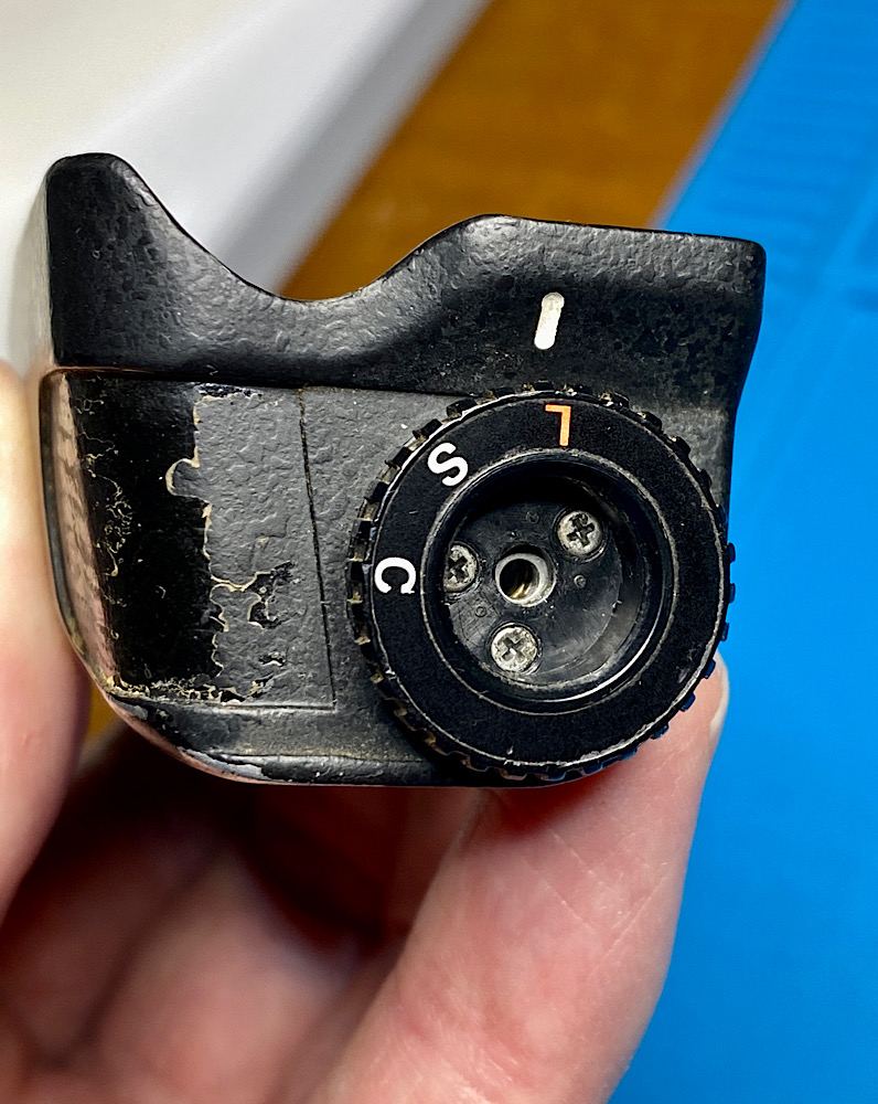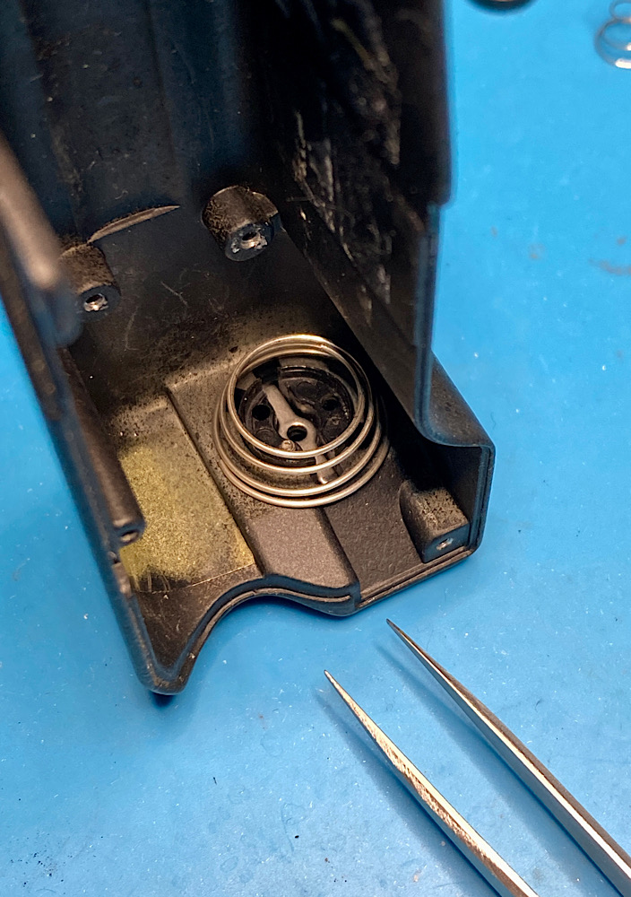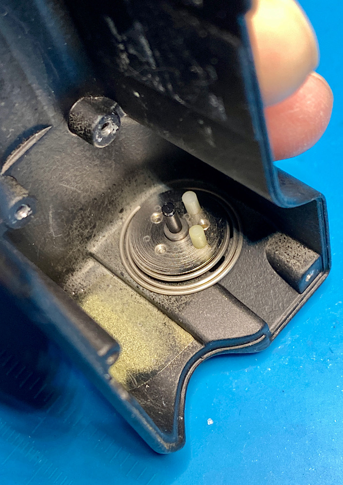 Achtung, es gibt noch eine weitere Kontaktfeder, die über dem Abschluss der Kunststoffkappe platziert werden muss. Dieser Kontakt schaltet den Belichtungsmesser ein, s. weiter unten im Thread.