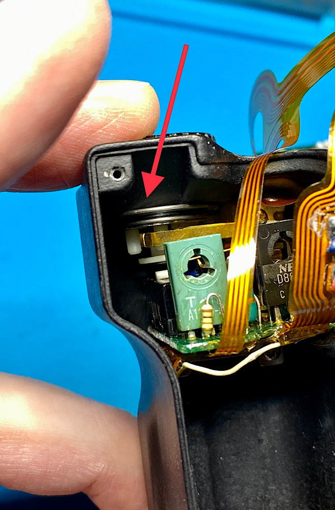Die elektronische Signalübertragung Motor Drive - Kamera erfolgt über federnde Stiftkontakte in einem Ring.