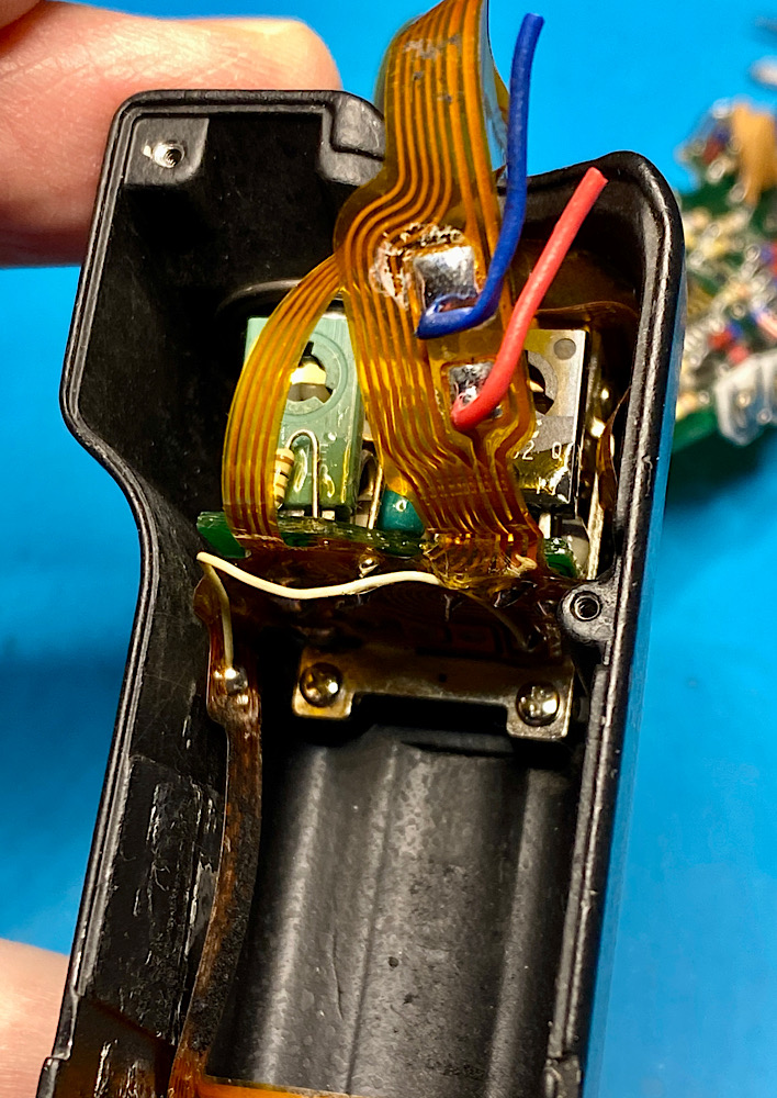 Eigentlich interessierte ich mich zuerst nur dafür, wie ich die Batteriekontaktplatte im Batterieschacht ausbauen kann. Ein anderer MD-4 (hier schon vorgestellt) hat an dieser Stelle Korrosionsspuren, die ich von außen nicht zufriedenstellend beseitigen kann.